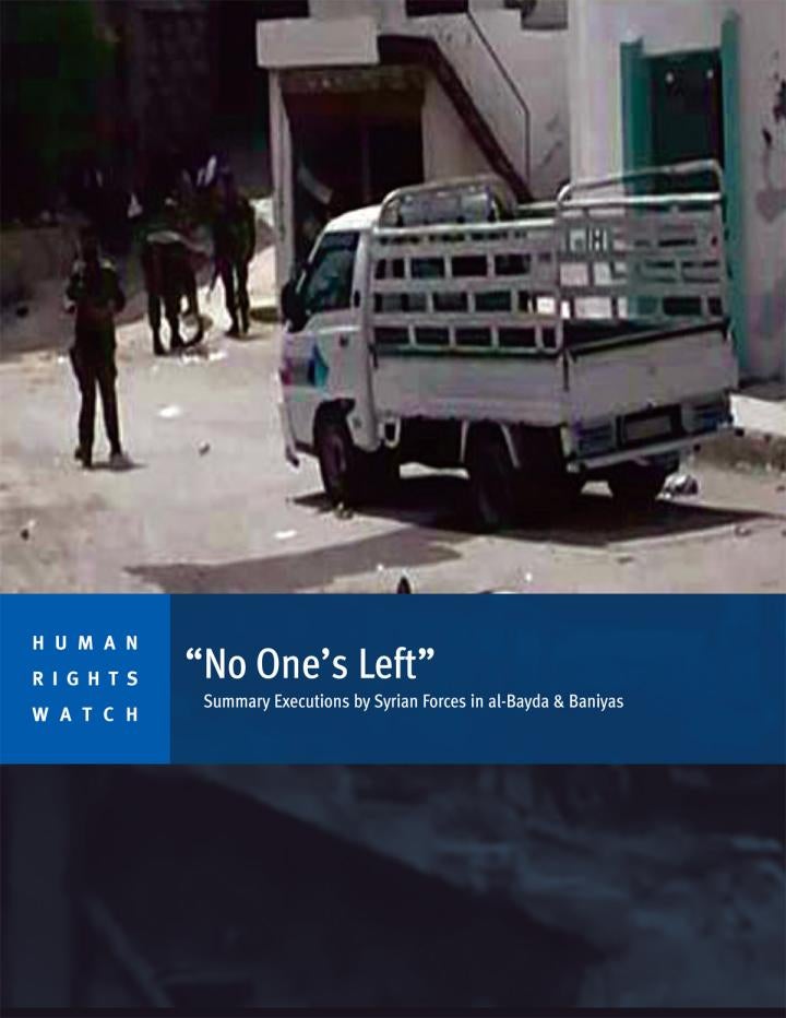 This 68-page report is based oninterviews with 15 al-Bayda residents and 5 from Baniyas, including witnesses who saw or heard government and pro-government forces detain and then execute their relatives.Working with survivors and local activists, Human Rights Watch compiled a list of 167 people killed in al-Bayda and 81 in Baniyas.
