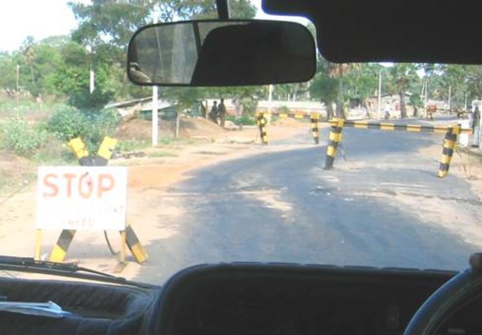 Sign for a police checkpoint on the A4 road south of Batticaloa town.