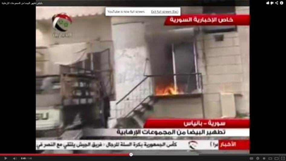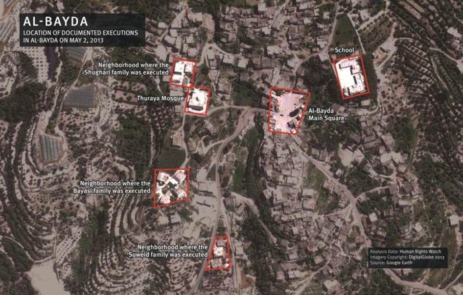 Human Rights Watch believes the witnesses are credible including because of the level of detail with which they described what they observed and because of the significant corroboration of facts in the statements with video footage filmed by the witnesses, as well as footage of government forces operating inside al-Bayda and Baniyas, likely filmed by some government or pro-government fighters, that was later published on YouTube.