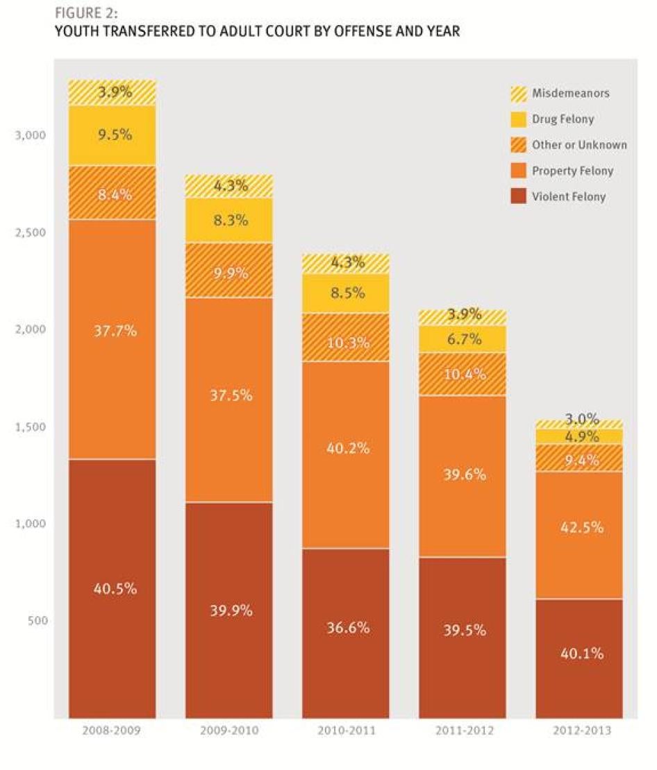 - Collect and make publicly available data on the disposition of cases where defendants are prosecuted in adult court for crimes committed while 17 or younger.