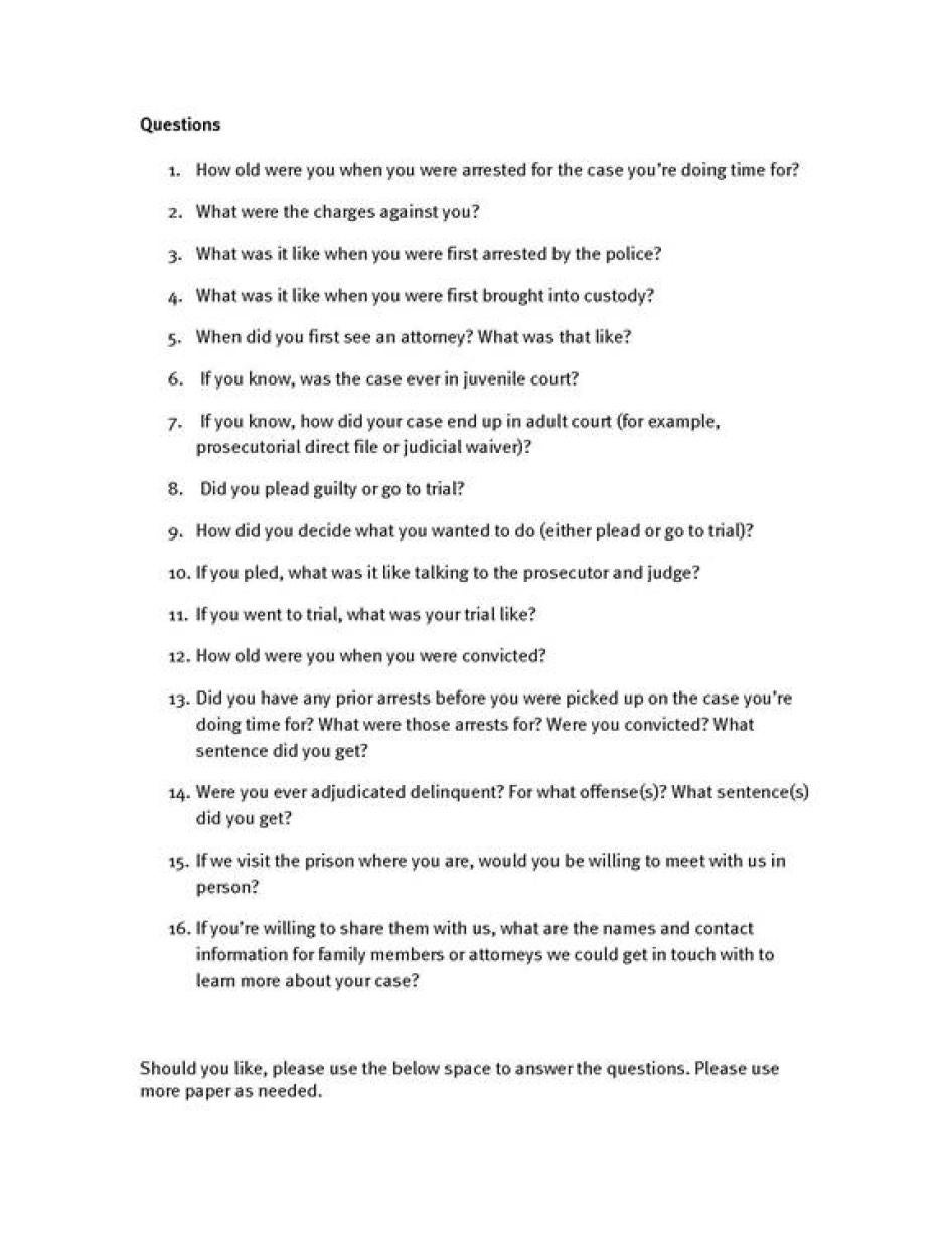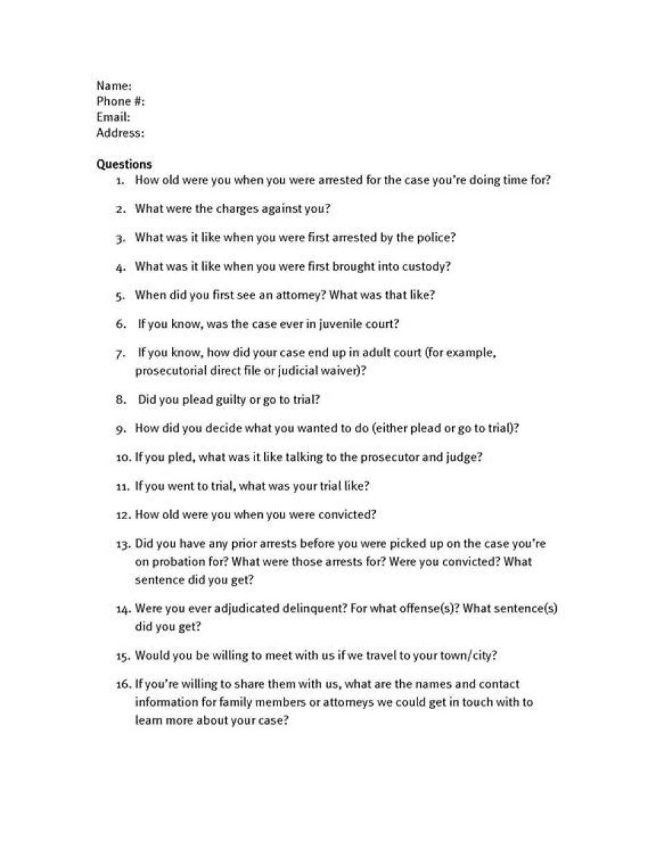 Four other survey respondents we interviewed were being held under house arrest, were on probation, or had completed their sentences. Of these, we interviewed three in their homes and one at a coffee shop.