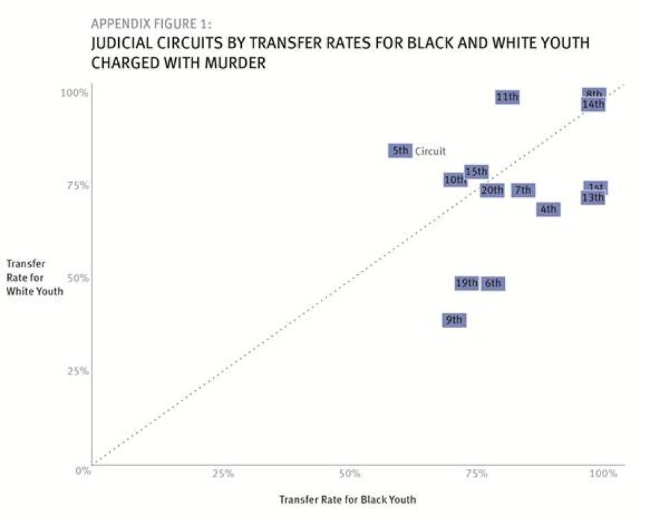 [335] For a summary of studies concluding that transfer does not effectively serve the purposes of specific or general deterrence, see Christopher Slobogin, “ Treating Juveniles Like Juveniles: Getting Rid of Transfer and Expanded Adult Court Jurisdiction,” Texas Tech Law Review, vol. 46 (November 6, 2013), pp. 24-31.
