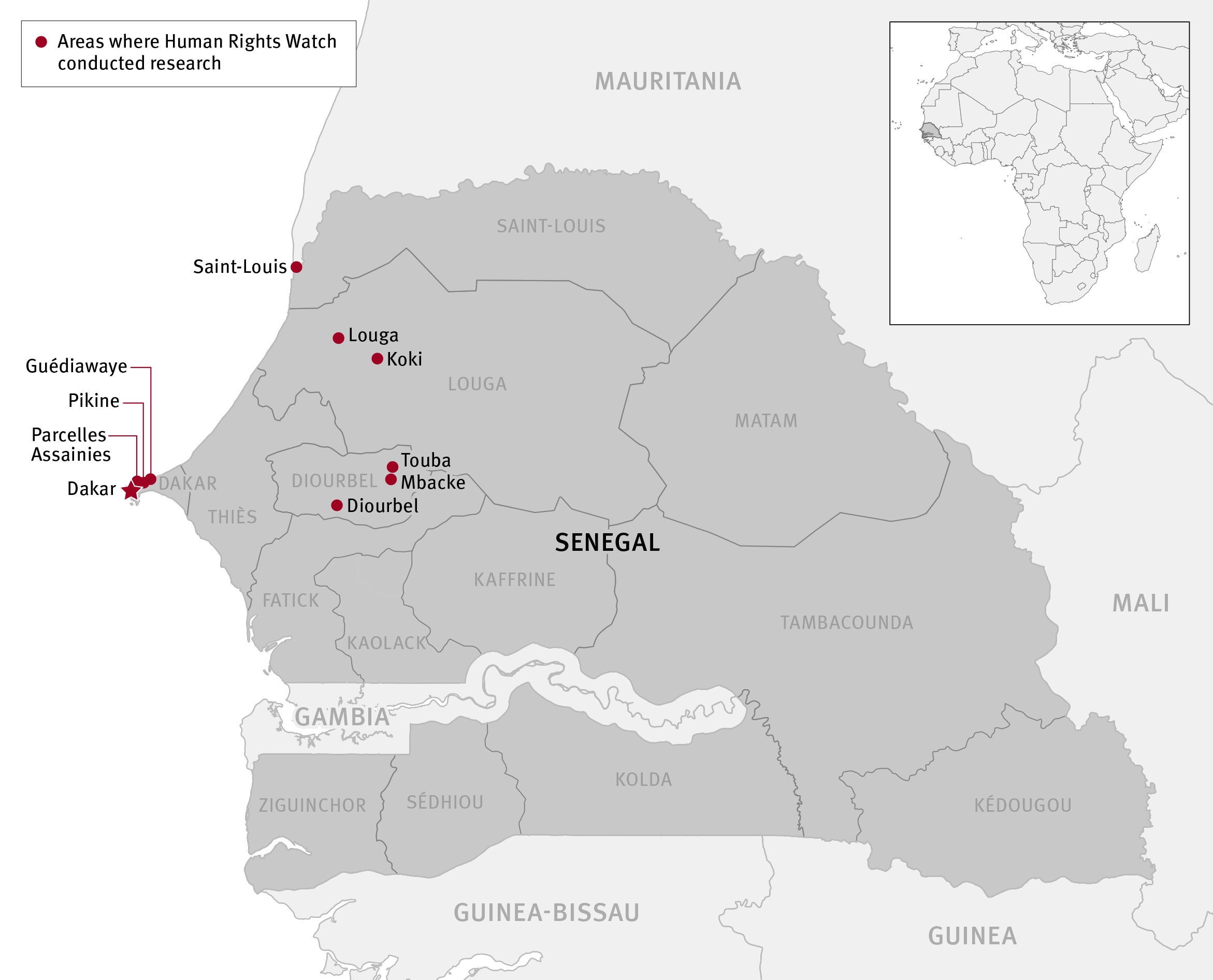 This report builds on five previous Human Rights Watch reports. In 2010,“Off the Backs of the Children”: Forced Begging and Other Abuses Against Talibés in Senegal provided a more detailed account of the history of Quranic education in Senegal, the rise of exploitation and abuse in certain schools, and the experiences of young boys in such schools. Human Rights Watch published four subsequent reports in 2014, 2015, 2016, and 2017. The 2017 report, “I Still See The Talibés Begging”: Government Program to Protect Talibé Children in Senegal Falls Short, analyzed the first phase of the largely unsuccessful government program to “remove children from the streets” in Dakar; it also documented ongoing abuses against talibés and child deaths in 2016 and early 2017. Abuse cases occurring in early 2017 that were documented in “I Still See The Talibés Begging” have been included in the 2017-2018 totals for this report.