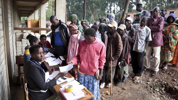 Burundians queue to cast their votes in the constitutional referendum in Buye, in northern Burundi, on May 17, 2018.